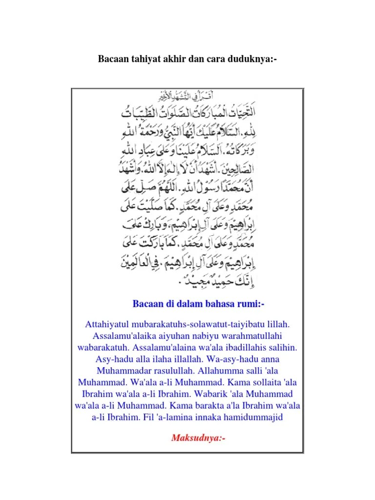 Bacaan tahiyat awal / tahiyal akhir rumi dan jawi dikongsikan dilaman ini untuk memberi input pada anda yang ingin memperlajarinya. 2 2 syarat bacaan tahiyat akhir.